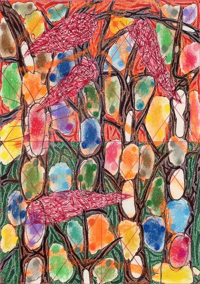 "Bird Trees and Be" by Will Northerner, 14.5" x 11.5", Watercolor, Illustrator ballpoint and Pastel on Strathmore Bristol paper, FS