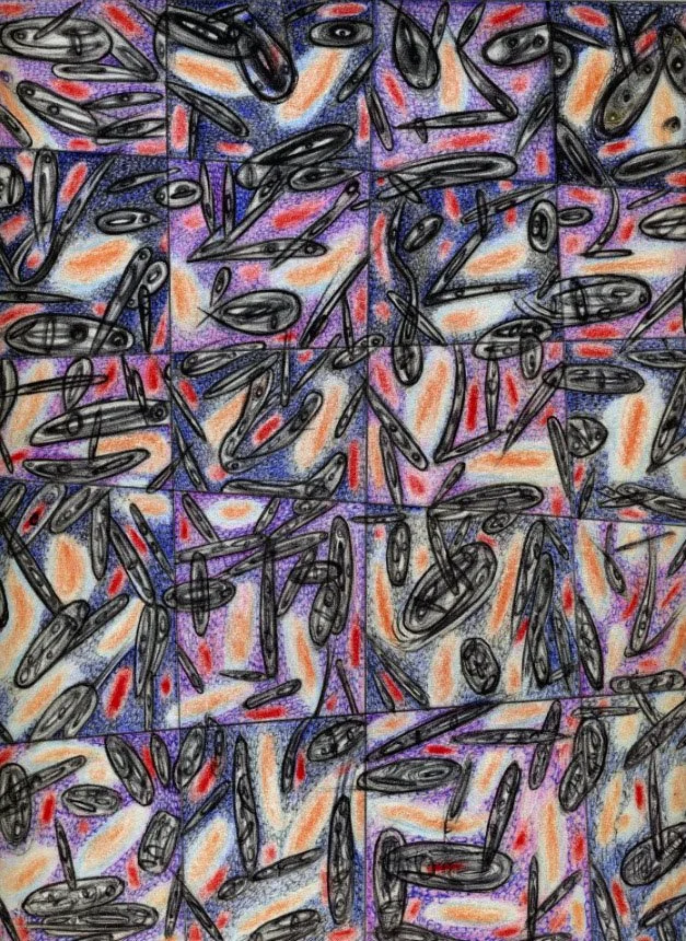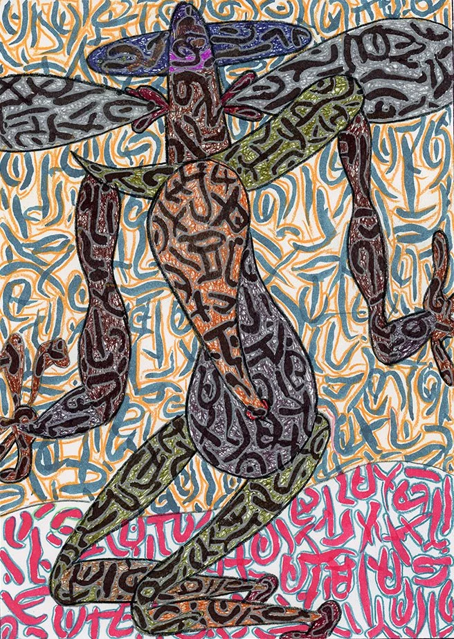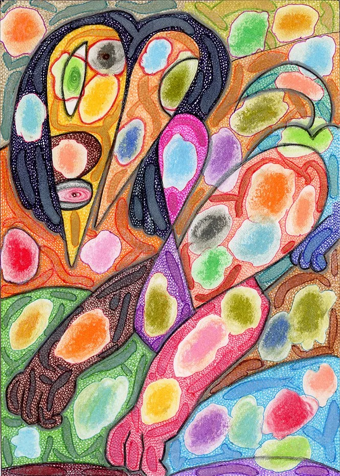 "Fatima Hive 25" by Will Northerner, 14.5" x 11.5", Pastel, Oil Crayon, Watercolor, Illustrator Ballpoint on Strathmore 3-ply Bristol paper, FS