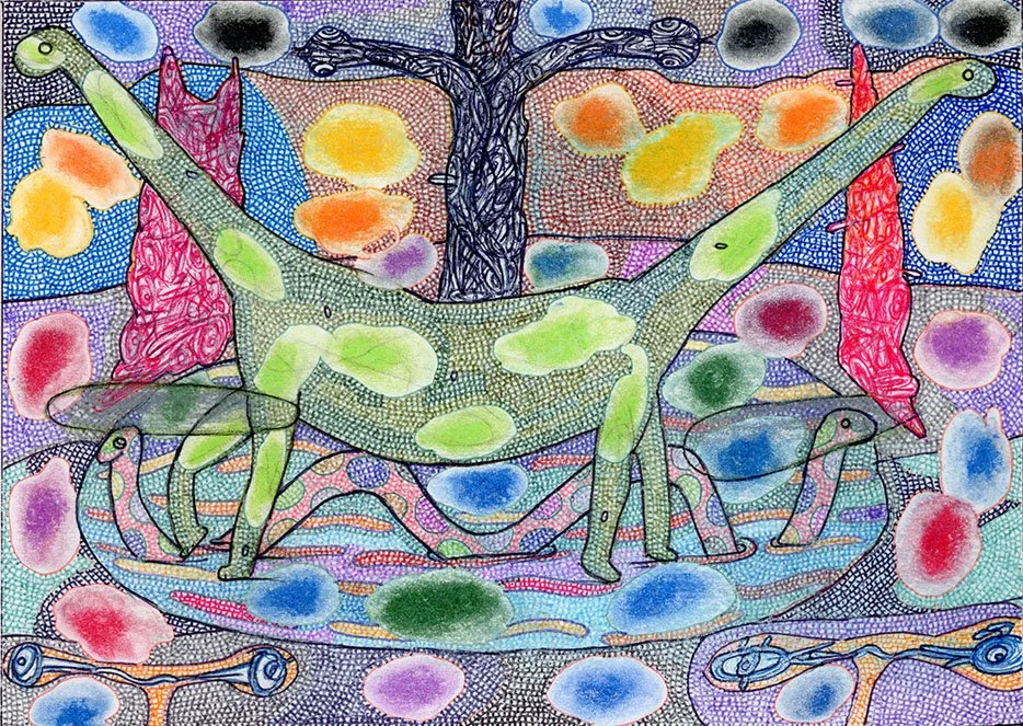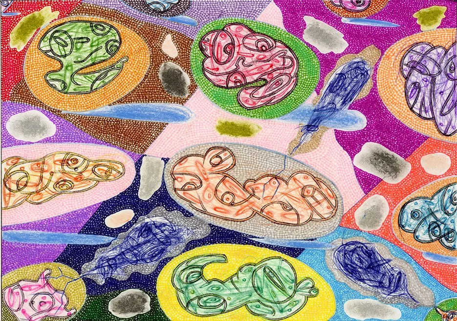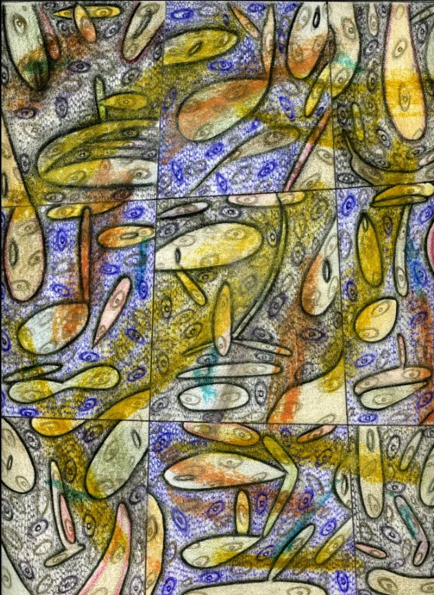 "Step 4424... Evolve More", Will Northerner, 15" x 11.25", Illustrator ballpoint, Pastel, Prismacolor, Oil crayon, on Arches paper, Completed 7-29-22, FS