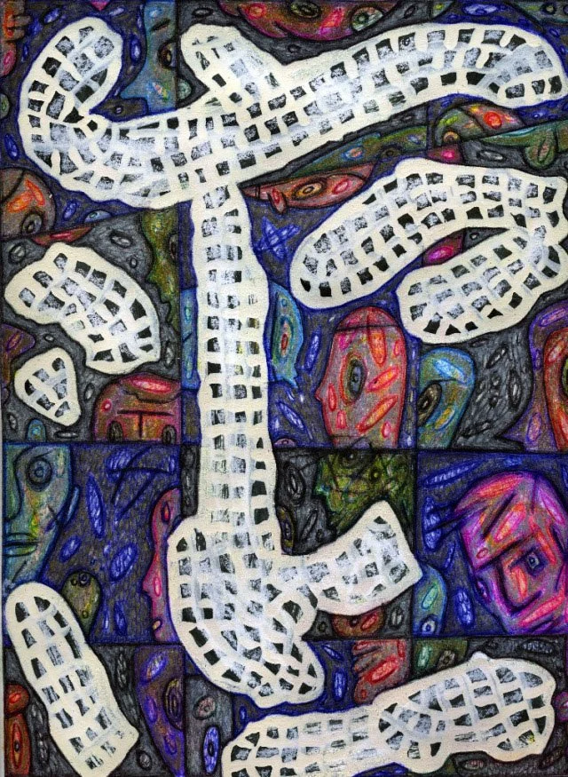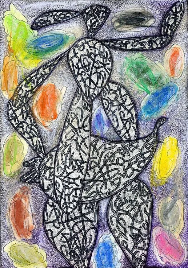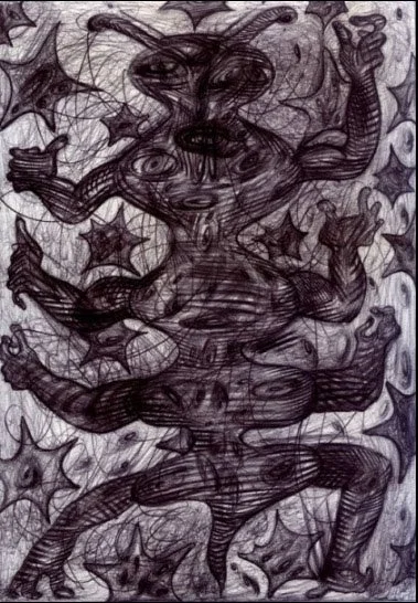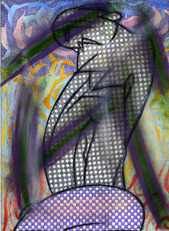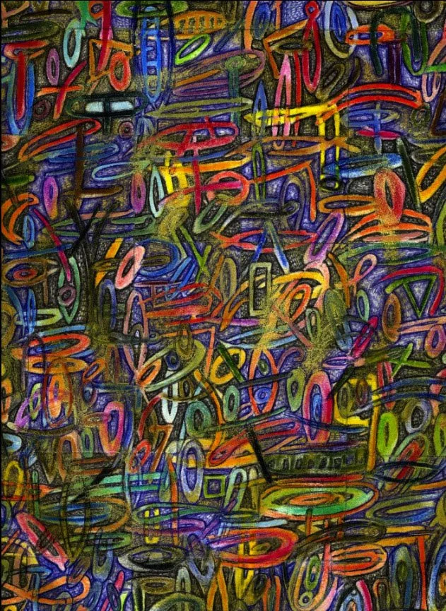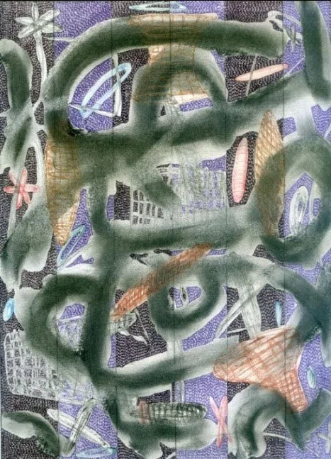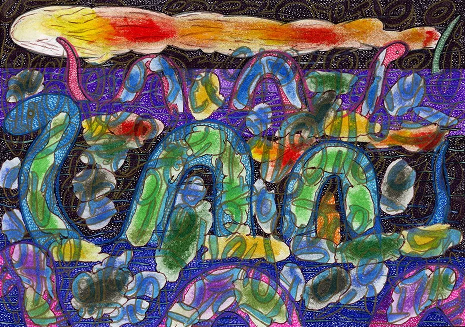 "UNSEEN UNKNOWN", 11.5" X 14", ILLUSTRATOR BALLPOINT, FELT TIPS, PASTEL, OIL CRAYON, ON STRATHMORE BRISTOL PAPER, 9-23-24, WILL NORTHERNER ART - FS