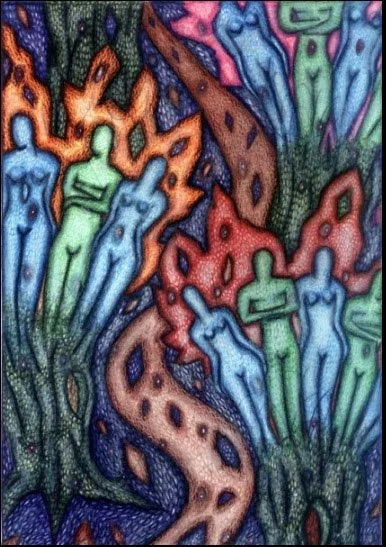 "Deeper", 11.5" x 14.5", illustrator ballpoint and Prismacolor on Italian paper, by Will Northerner, Completed 3-01-08, FS