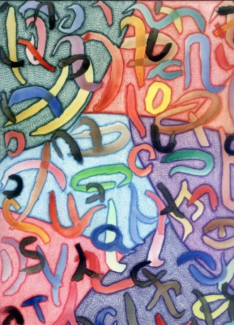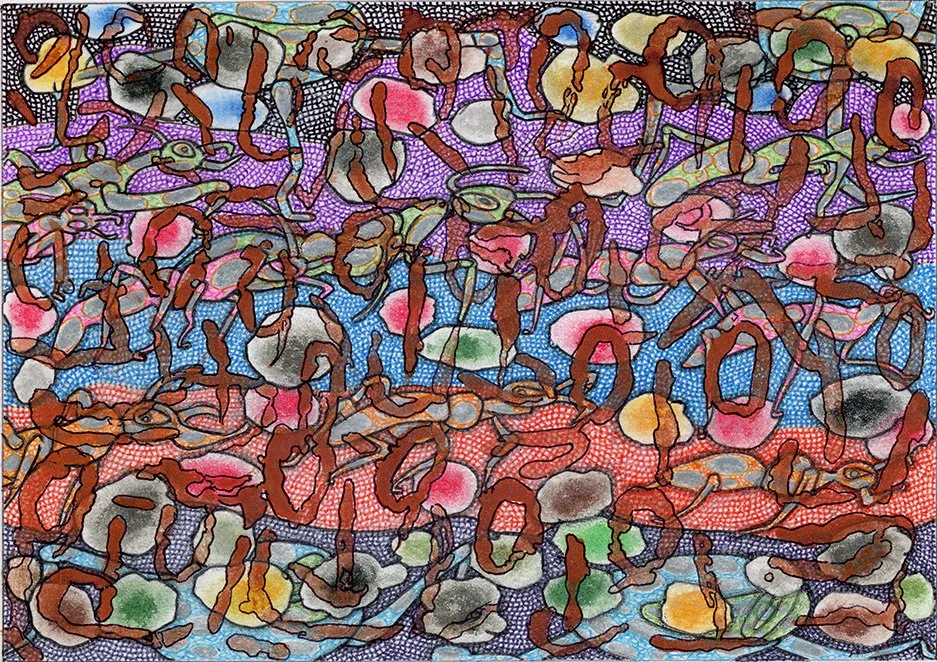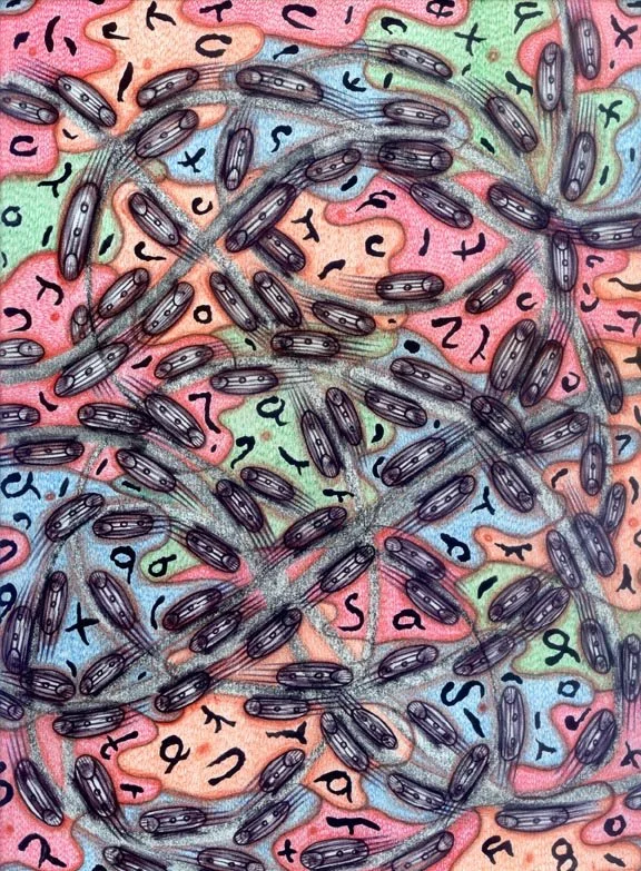 "Asemic Stew" by Will Northerner, 14.5" x 11.5", Watercolor, Illustrator ballpoint, Pastel on Strathmore Bristol paper, FS