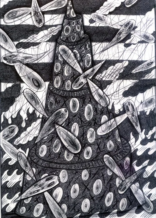 "Demiurge Skyhook", Illustrator ballpoint on Italian paper by Will Northerner, FS