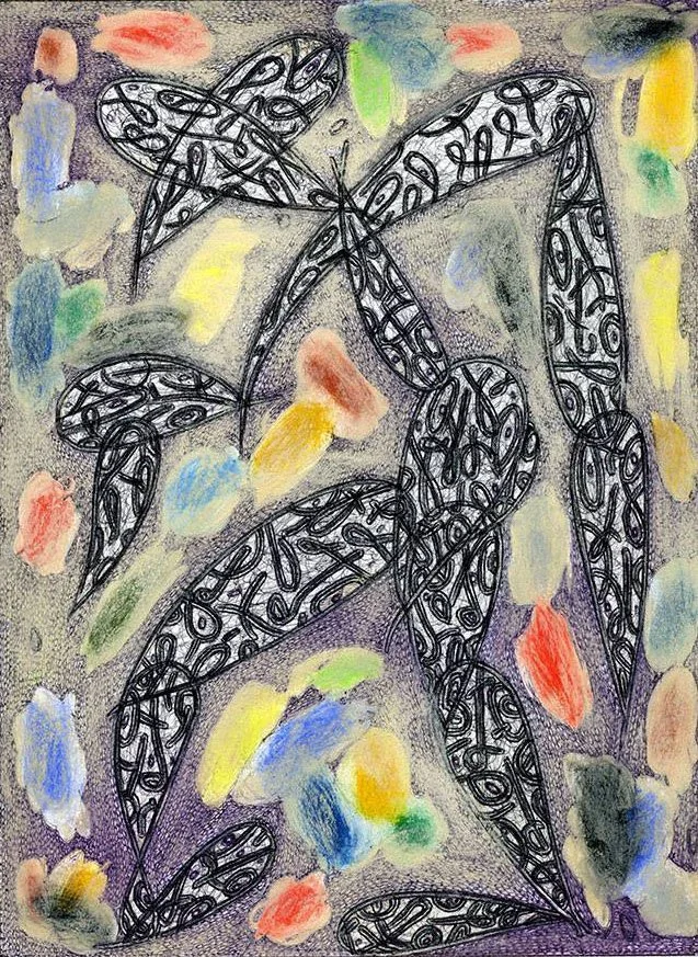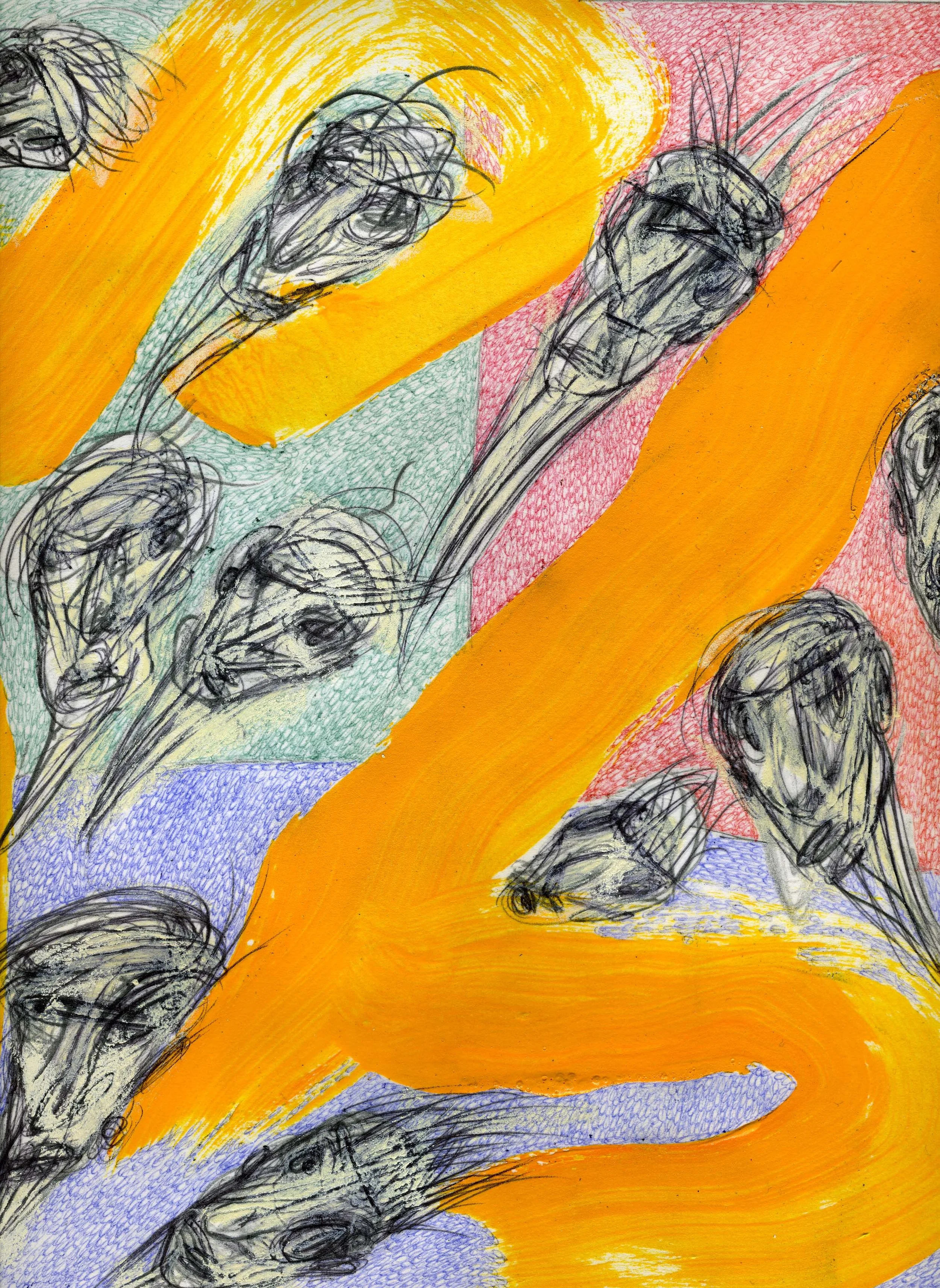 "Nijinsky Simoom" by Will Northerner, 14.5" x 11.5", Watercolor, Pastel, Illustrator ballpoint, Oil crayon on Strathmore Bristol paper, Completed 2018, FS