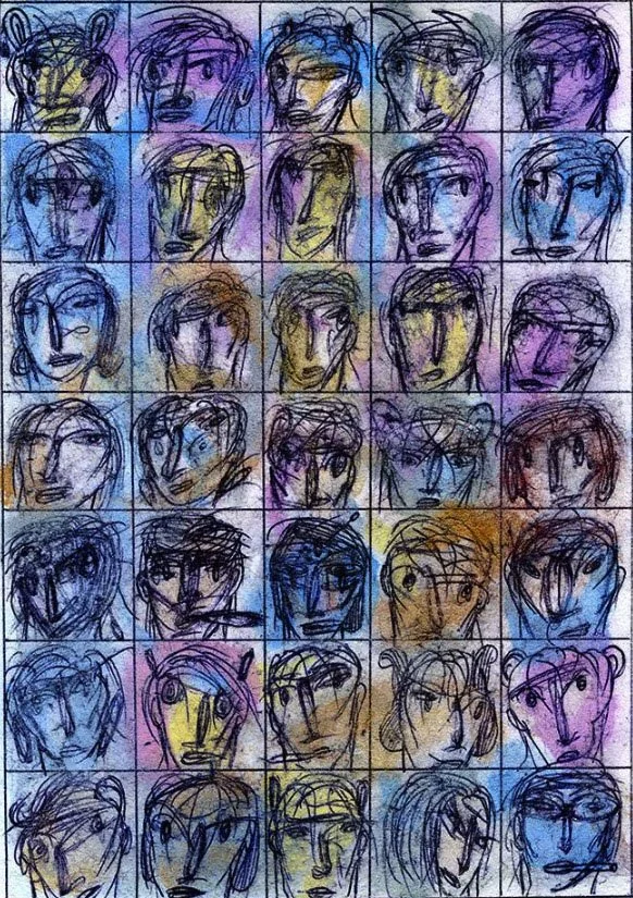 "Rapt Audience 22", 14.5" x 11.5" Watercolor, Prismacolor, Oil pastel, pastel, illustrator ballpoint on Strathmore Bristol paper, by Will Northerner, Completed 5-19-16, FS
