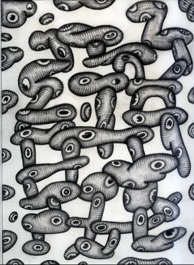 "Cluster Loops" by Will Northerner, 14.5" x 11.5", Illustrator ballpoint, India Ink and Prismacolor on Strathmore Bristol paper, FS
