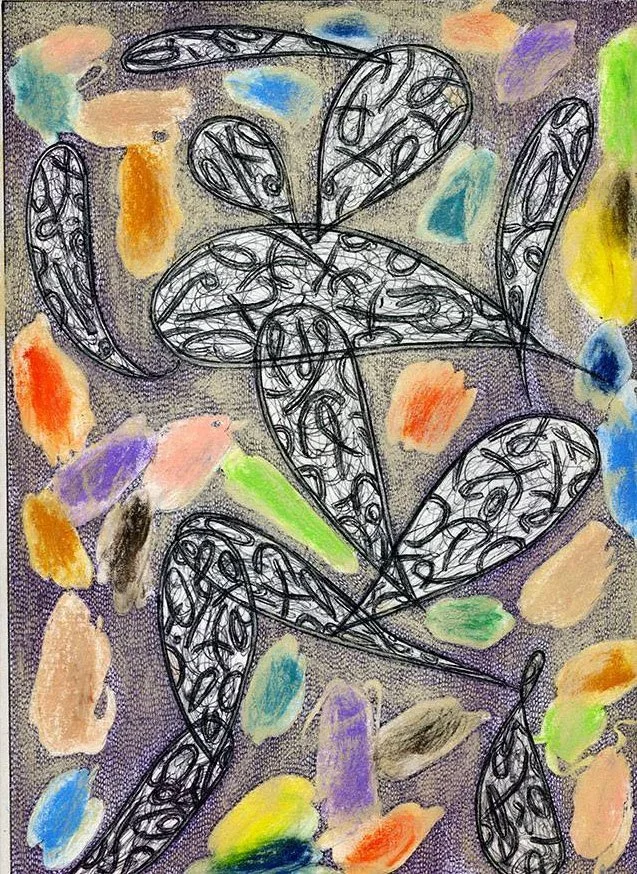 "Posy 1", Oil crayon, Watercolor, Pastel, illustrator ballpoint on Strathmore Bristol paper, 14.5" x 11.5", Completed 2-25-15 by Will Northerner, FS